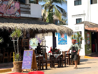 It is hard, if not impossible, to capture the bustle and energy on the Pochutla evening streets--people of all ages, dogs, cars, pedestrians, the street vendors, the brightly lit stores behind them. I have never seen--except perhaps during a festival which has a completely different, less everyday feeling--this kind of energy on a U.S. street. The city felt alive. It is the kind of streetscape that I picture in New York's lower East Side in 1910. It is a streetscape likely to haunt my dreams. I hope the weather can mitigate what is a tight-packed canister for plague transmission.